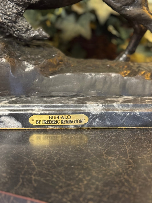 Bronze Sculpture With Marble Base Titled "Buffalo" By Frederic Remington